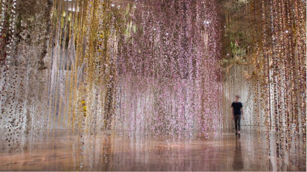As we were wrapping up, the artist herself joined us and we bedecked her with lei and floral gifts. Slender and dressed in black, Rebecca Louise Law looked amazing and happy with our floral adornments. She spoke a few quiet words thanking us.