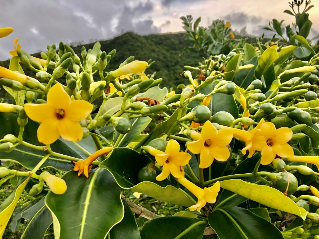 • Na`u, native Hawaiian Gardenia lots of flowers and buds (also triggered by abundant soft rains before the winds)