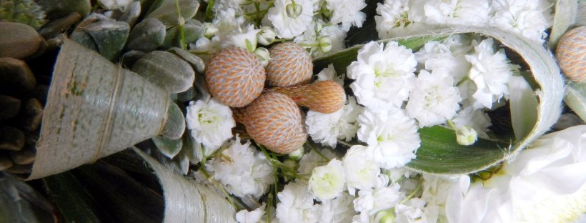 So, if we want more flowers, don’t let the fruit form. In the case of Pua Keni Keni, the fruit on the stems makes for great décor in a flower arrangement. You can even string the “balls” into lei, as my akamai lei making buddy Dede Replinger Sutherland does.